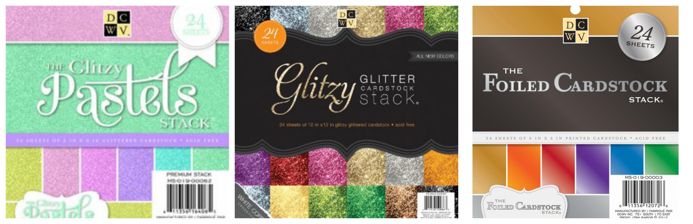 Glittered cardstock is an extremely easy way to add shine to your projects. In my opinion if you are going to buy Glittered or Foiled Cardstock, buy DCWV. They produce beautiful, high quality papers. Their glittered cardstock has a variety of colours and the glitter looks very concentrated but does not rub off when touched. One 12 x 12 inch stack ranges from 10 USD on sale to 20 USD – (I ensure that I catch the sales!) and the 6 x 6 inch stacks can sell as low as 2.99! Here’s where to buy these stacks at really good prices…(and i reiterate…when on SALE!)