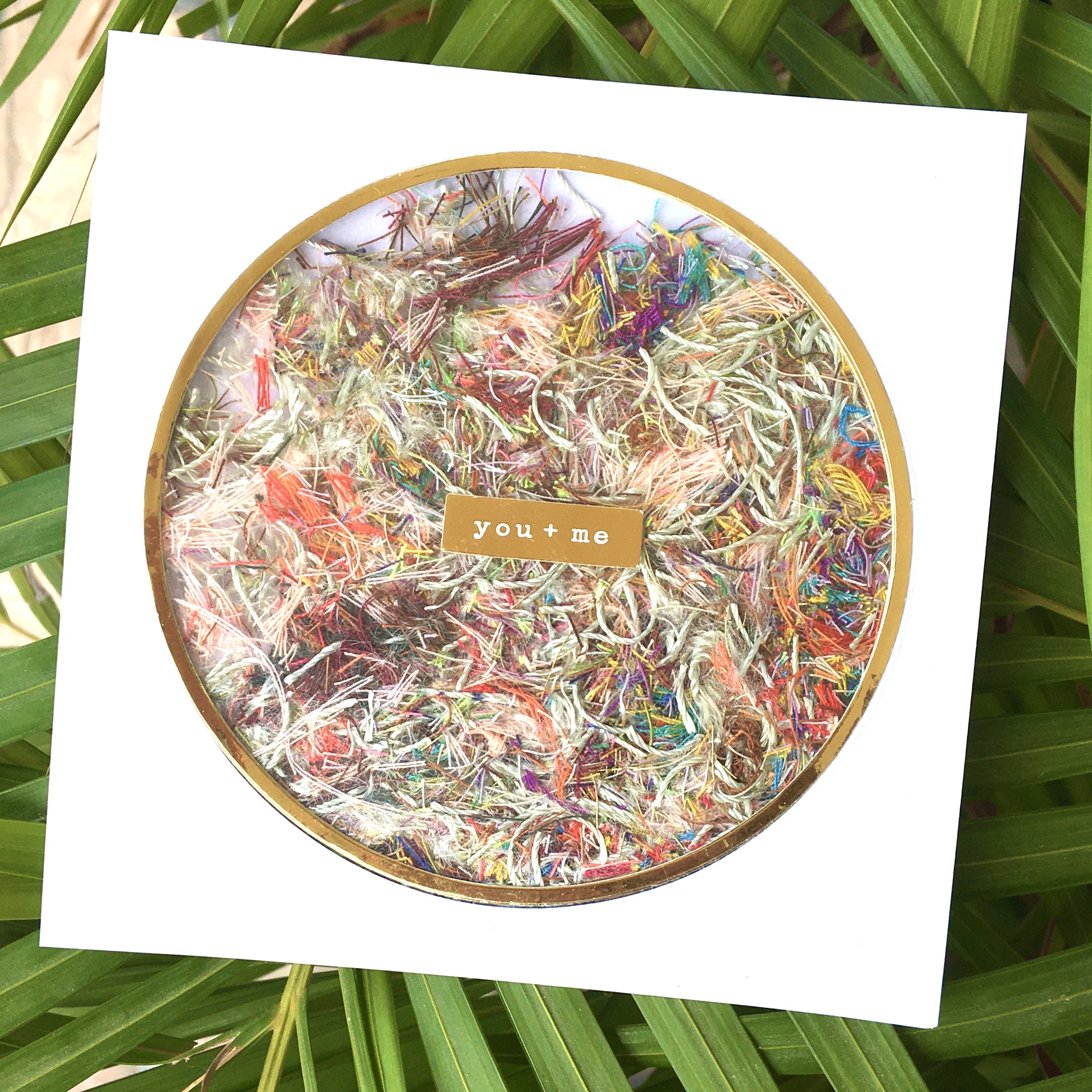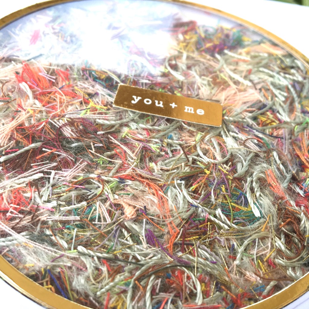 I think this card looks so chaotic and so cool! I love the interest all those itty bitty threads add. I could get lost looking at it.