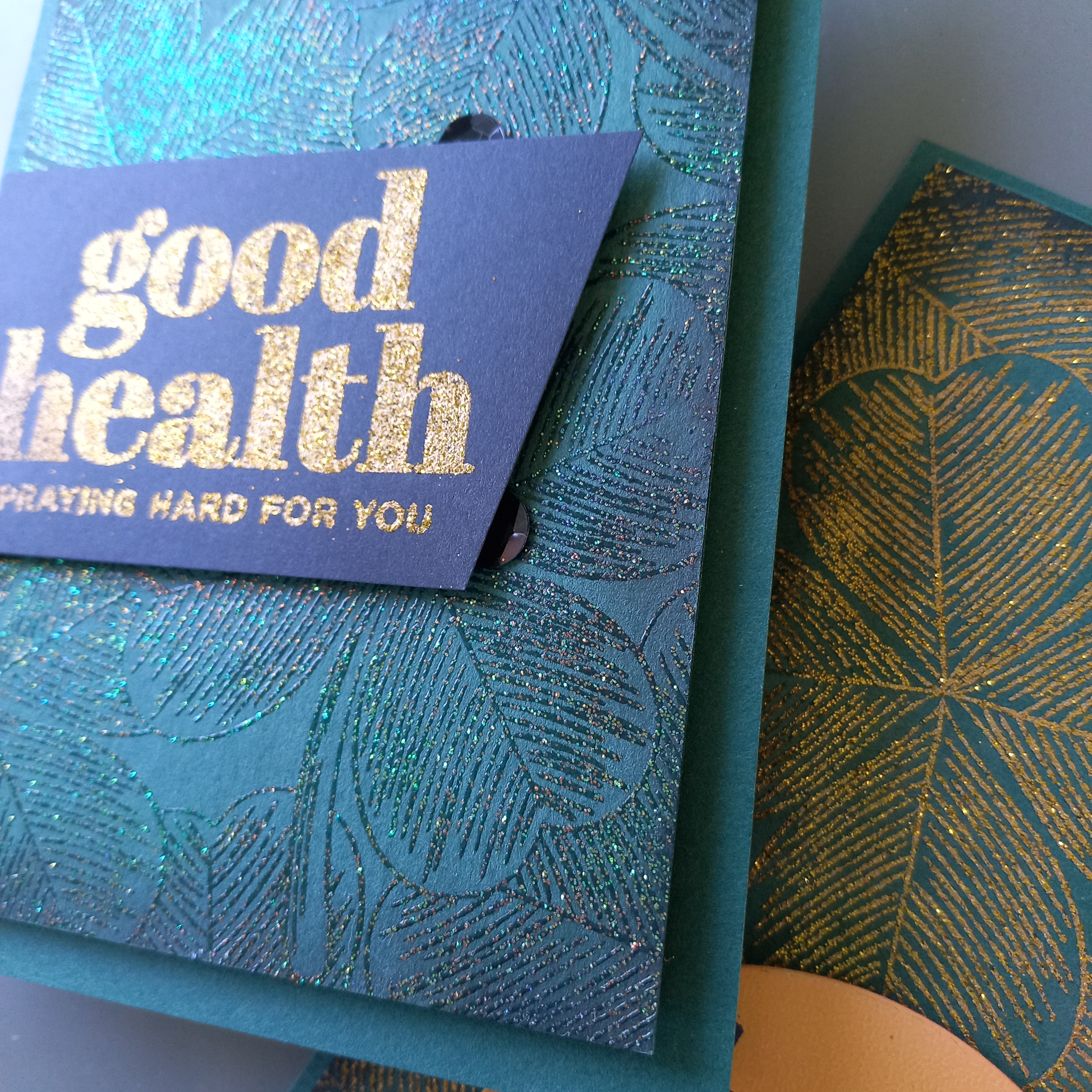 It is so good to have you on my blog today. I am sharing two cards made using the newest release from Simon Says Stamp, “Good Luck Charm”. The holographic and gold glitter embossing used on the cards gives an amazing finish. I cannot stop gazing at these cards in the light. I am also enjoying these lovely sentiments from CZ design.