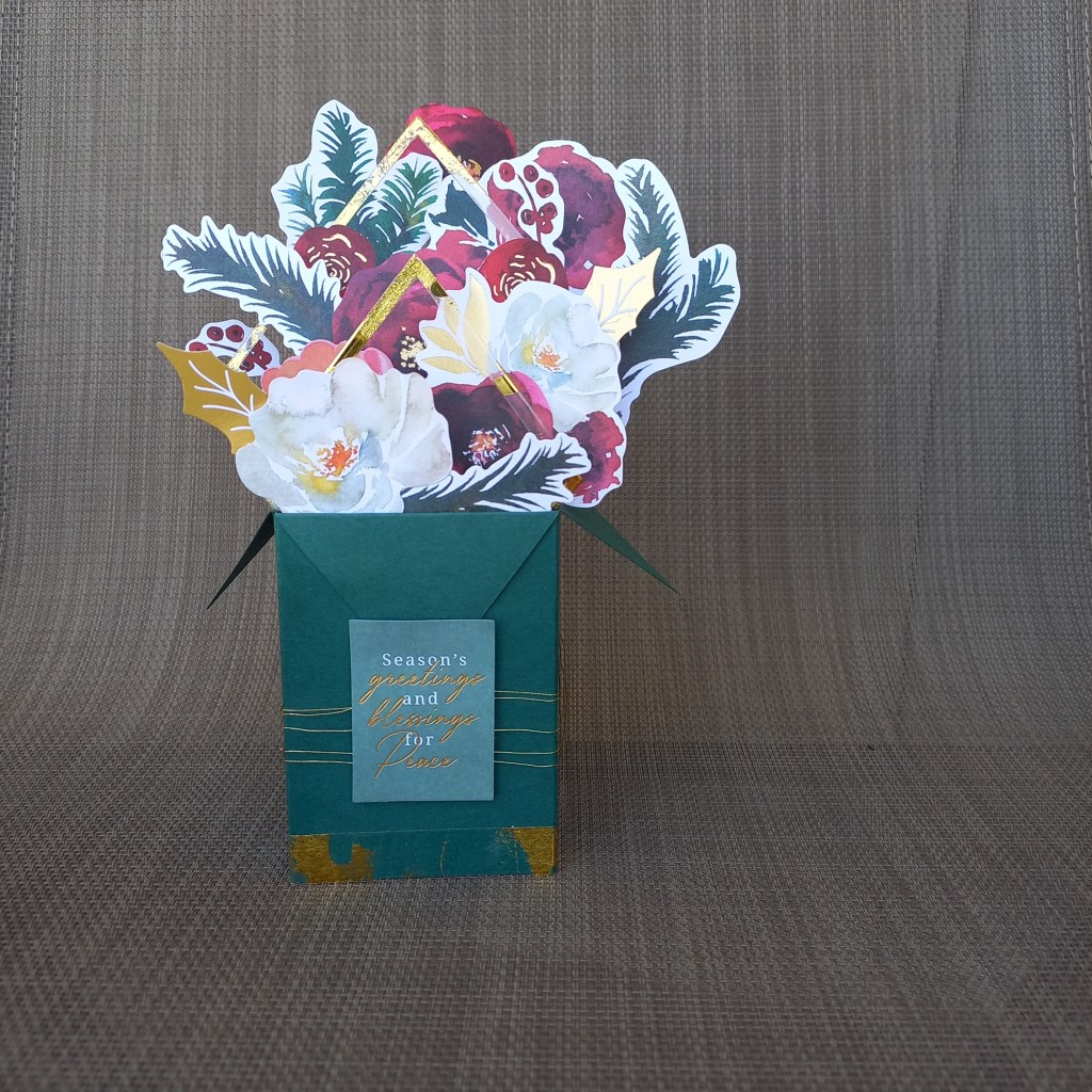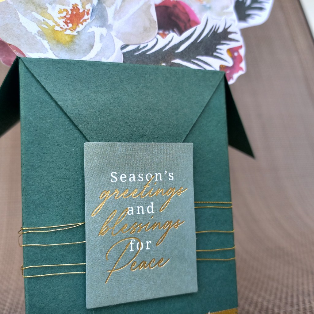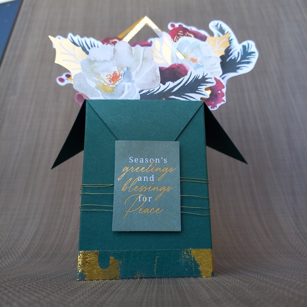 - Choose your favorite flowers and ephemera from the Santa Lane Floral Die Cut Shapes and glue to the panels inside the box. You can also stick flowers on top of one another with foam tape to give dimension.