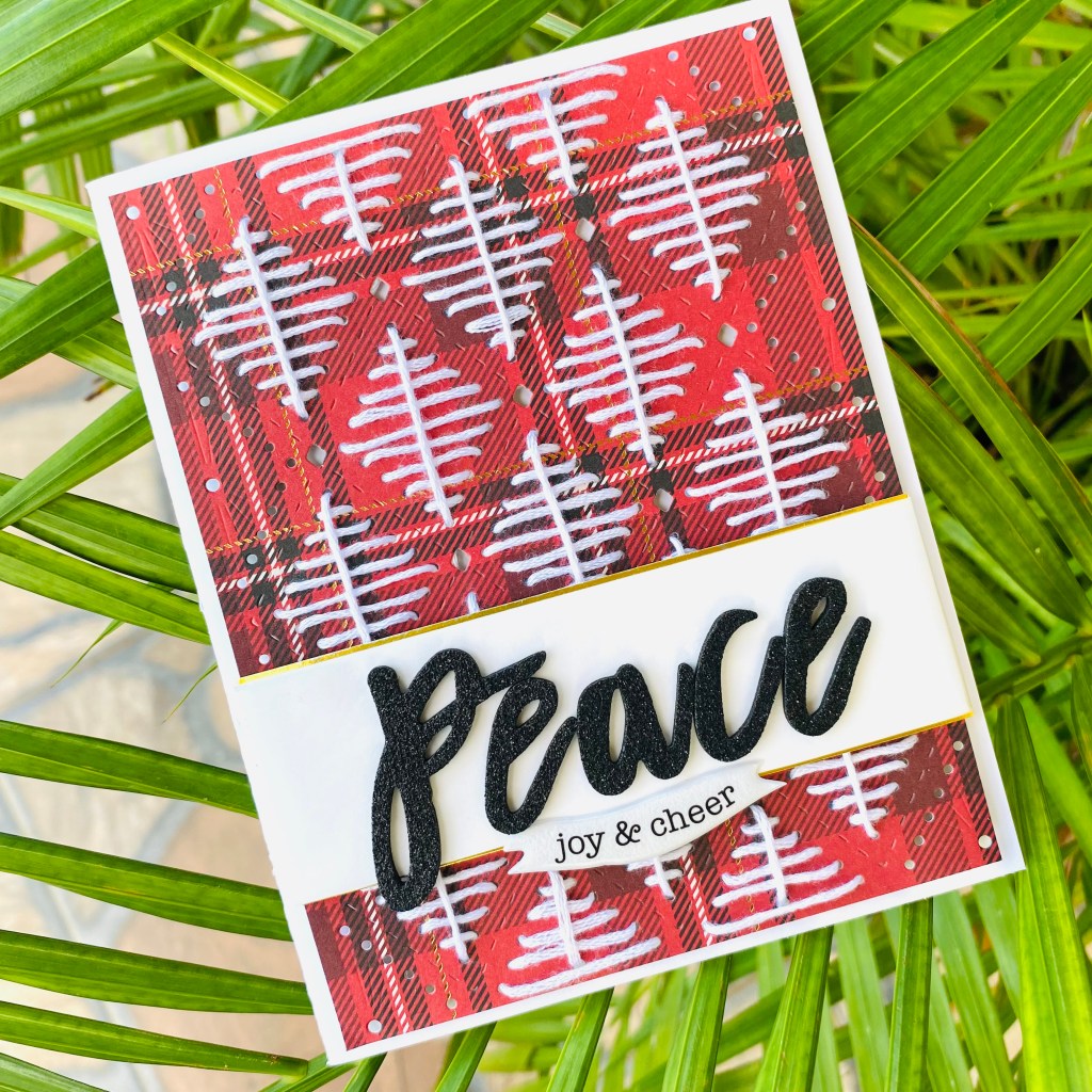Layering patterns can be so fun especially when you use different mediums to do so. In this card I layered one pattern on top of the other by cutting the Stitched Diamond Argyle Etched Dies from Spellbinders Stitchmas Christmas Collection from plaid patterned paper.