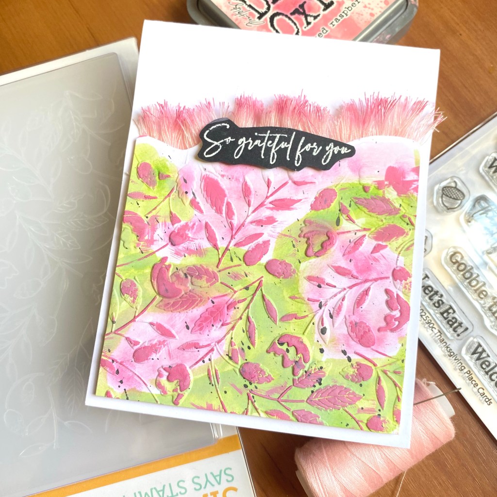 Sharing this card today made using this beautiful embossing folder from Simon Says Stamp, the floral festoon embossing folder.