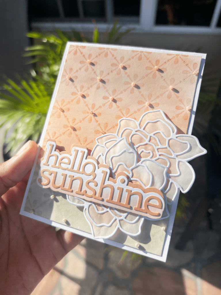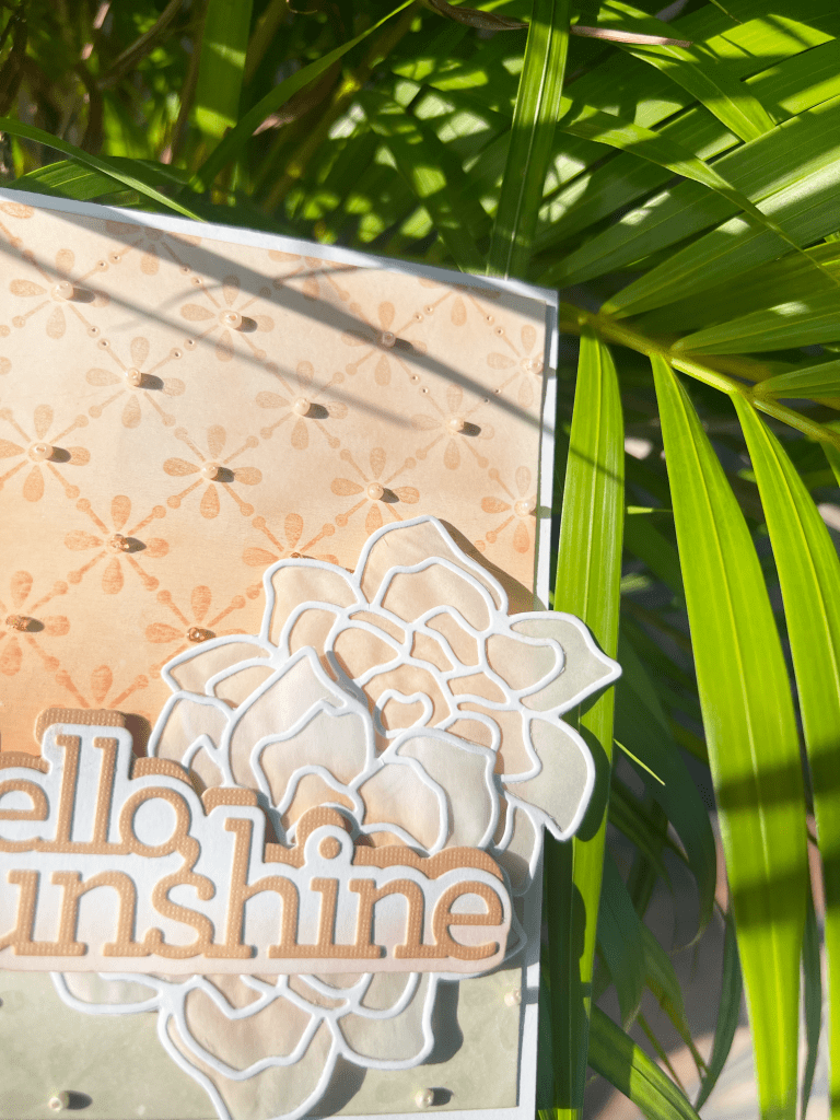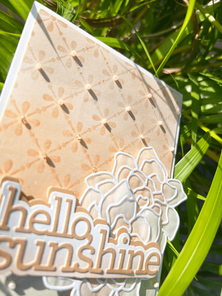 - Cut the hello sunshine die and shadow from peach cardstock and the also cut the shadow from white cardstock.