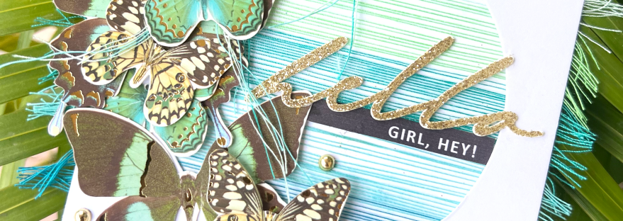 Sharing this card today that came together very quickly using premade butterfly ephemera, a sentiment sticker and a printed sentiment strip.